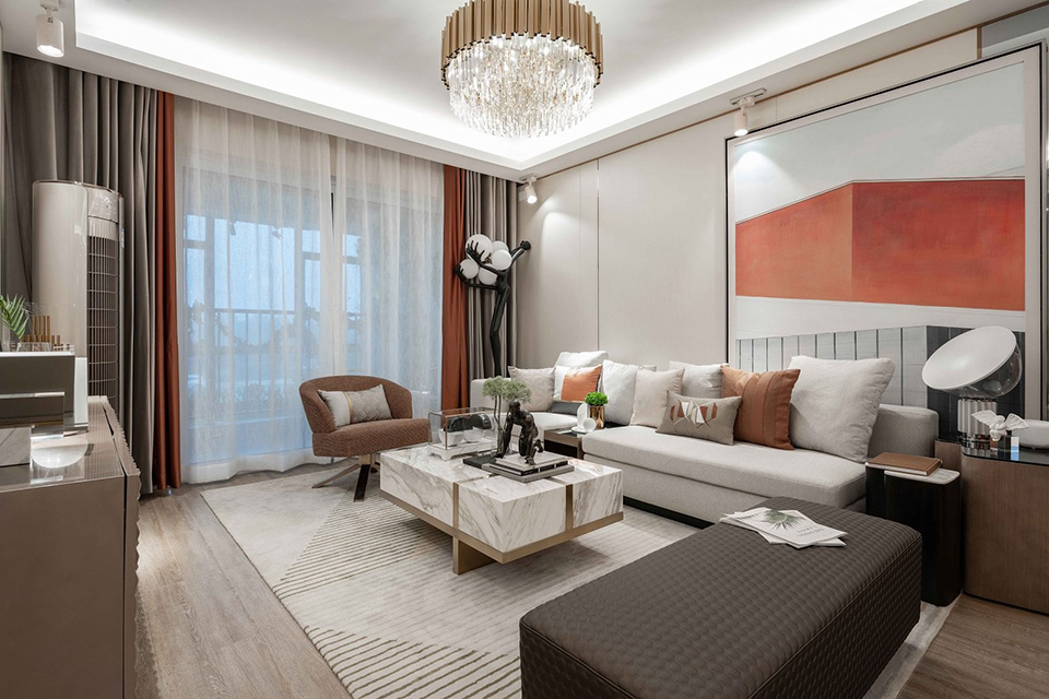 革新 生活從空間規劃到材質語言,逐步形成生活場景的界面,設計師從地理位置及文化記憶出發,從自然中提取配色和材質的靈感,以超越傳統樣板間的形態,精致打造一處時代革新的高品質高配套的棲居之所。金迪世紀駐深圳南山區華僑城版塊,以其得天獨厚的地段價值,背山面海,擁享“一城一灣,兩園三山”的豐富生態資源。出則都市繁華、入則小隱于市?!?廳一樓客廳為兩層挑空空間,尺度上的把控給予空間更多的舒適性,入戶映眼所及...